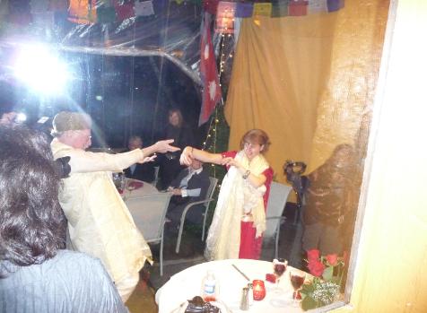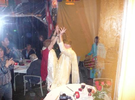 T h e N e w L e t t e r i s . . . B B is for Bruce's 60th Birthday Bash. Too bad you can't see my feet off the ground to fully appreciate the levitation We will never be able to thank enough the wonderful crew at Yeti Restaurant ! They spent days preparing the most marvelous meal and party pleasures. They even went to Nepal to bring back our wedding gowns. The whole event just glowed from beginning to end. If you didn't make it, and you are in Glen Ellen, let me know and we can have a consolation party at the restaurant of heavenly food. Next Page |