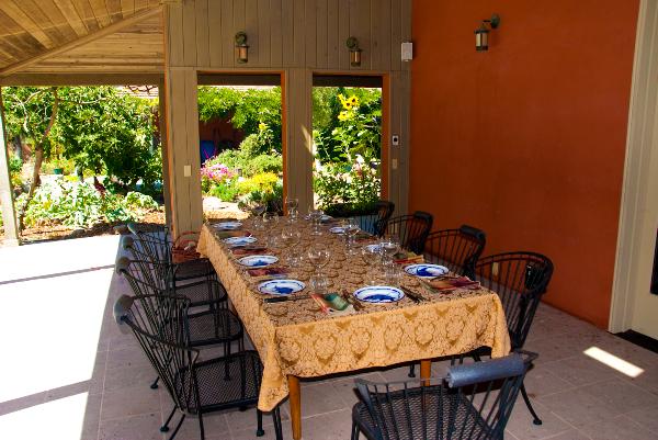| A REFRESHING CEREMONY, that's what it's all about. Right in the heat-of-the-harvest, right when you are convinced that you don't have time to do anything 'social', that's when you take off almost the whole day for ceremony and feasting. It is a tradition for us that comes up at the spur of the moment. Everybody assembles at a few days notice with apparent ease. It's a chance to let our loved ones know that the unseen worlds are important to us. Krassi and I have a story that we love to tell certain people... We were at a trendy wine shop in Napa called the Bounty Hunter and calling upon a twenty-something that we were trying to convince to buy our wine. He was a good guy, but wanted to know more about us. We were happy and glib to answer all his questions, except one. He asked us who our consultant was. This was a bit of a shock because I am the consultant to others. But Krassimira and I both thought instantly and independently of the answer, but we didn't have the nerve to say it. - God is our consultant - It went unsaid. We will never know how he would have taken that: plus? minus? I doubt he would have taken it neutrally. That's the beauty of wine, it puts you out there, in ways that no other product seems to do. And Speaking of Feasting ! |
