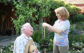 T h e N e w L e t t e r i s . . . H Which is for the History of the Horseshoe Golf World Championships Will make history again on May 3rd 2014 at noon, until then - Once Upon a time ... The owners of AHH Winery invited the Wine Club members to play Horseshoe Golf at the b e a u t i f u l 18 post course at the AHH Villa. The stars found it stupendous, even the louts loved it. Folks found that it's more fun than horseshoes, and way easier than golf.... Plus, it was living proof that AHH Winery is an All-American winery, because they sponsor a sporting event. Horseshoe Golf is the only game in the world that encourages you to make up your own rules, such that you will like the game more and more. It's the game that makes a boring backyard into a horseshoe pitching paradise. "The family that pitch together doesn't bitch together." This game has become the permanent craze that is sweeping the cosmos. Think of it this way: this is a get-rich-quick opportunity. Get in on the ground level because every shoe pitched hits pay-dirt. The smart money has decided to own their own franchises. You too can become a pro and open your own pro-shop! The possibilities are endless, the history proves it. ( You know that annoying phrase: "So if you're so smart, how come you're not richer?" Well now's your chance to remove all annoyance. ) That's our pitch. Buy your franchise by calling 707 933-4404 leave a message Now, a little bit more on the history of the celebrities that play Horseshoe Golf... Our Founding Father a little knock-kneed, but still cute And on that beautiful May day, we did get a winner ! The 'first' World Champion... Walt Zabel |
